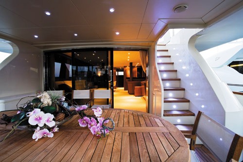 The main deck, with its vast open space living room and the kitchen that is equipped with all types of accessories, represents the convivial and recreational area. The lower deck is dedicated to privacy and relaxation and it includes four spacious and bright cabins, all of which include an independent bathroom.