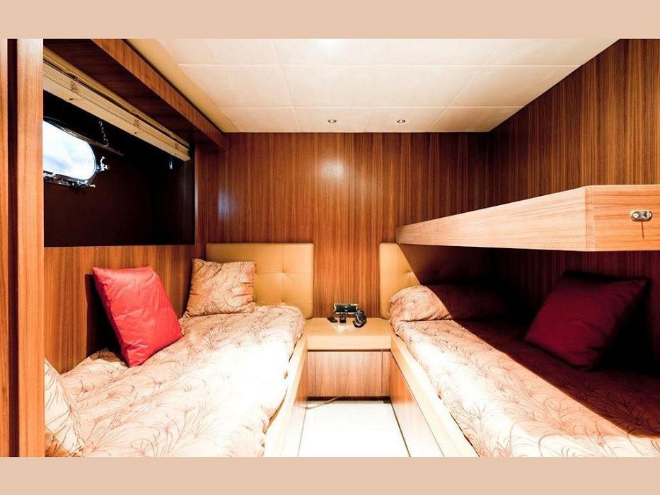 ALRISHA is a 2007 28m (92' 6") Tecnomar Nadara 26, able to stylishly accommodate up to 8 guests in 4 cabins. She is able to cruise at 22 knots and get you from beach to harbour with ease and speed.