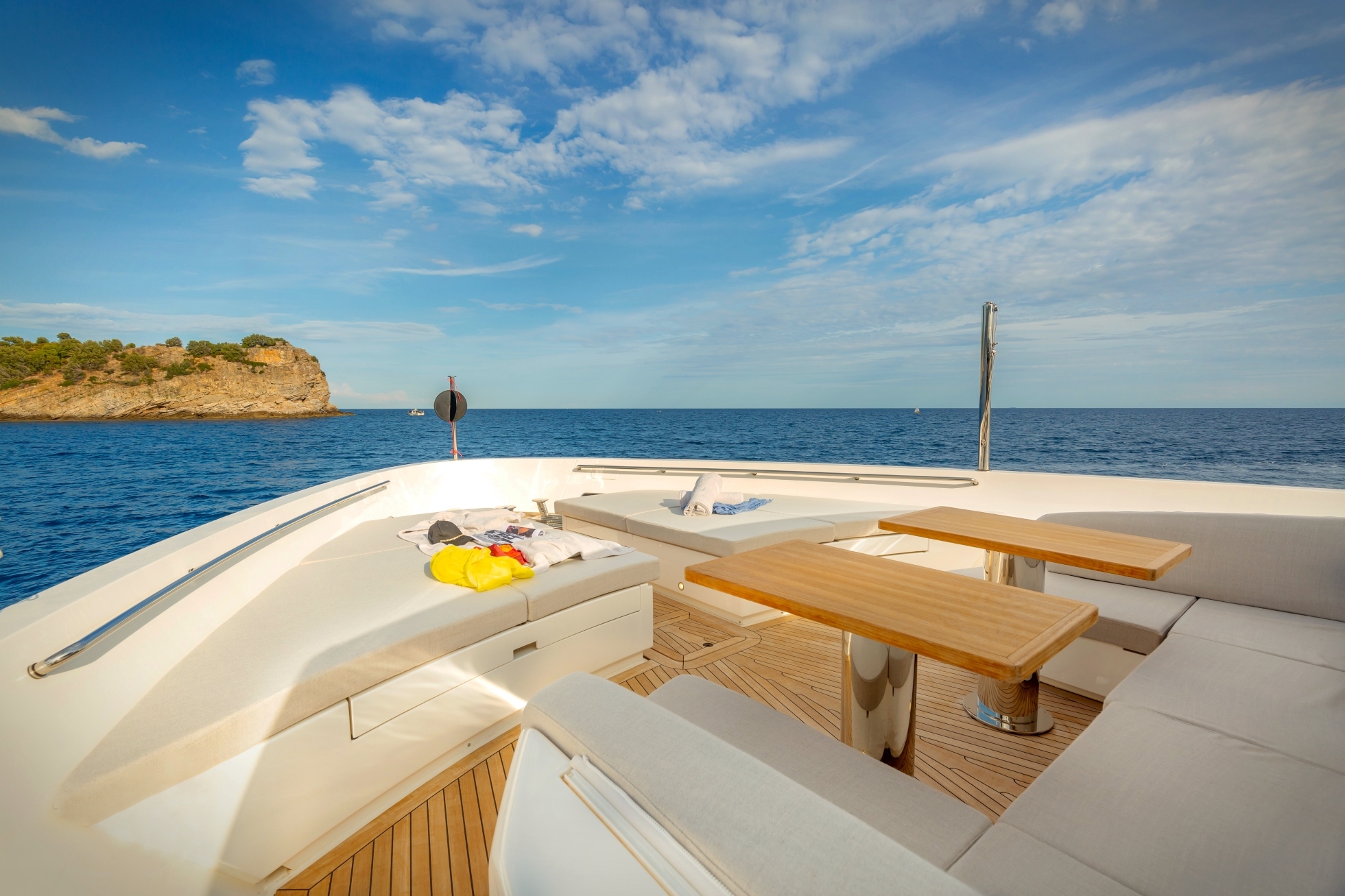 Alternative al fresco dining options can be found on the spacious foredeck which also boasts a selection of sunpads perfectly located for an afternoon in the sun.