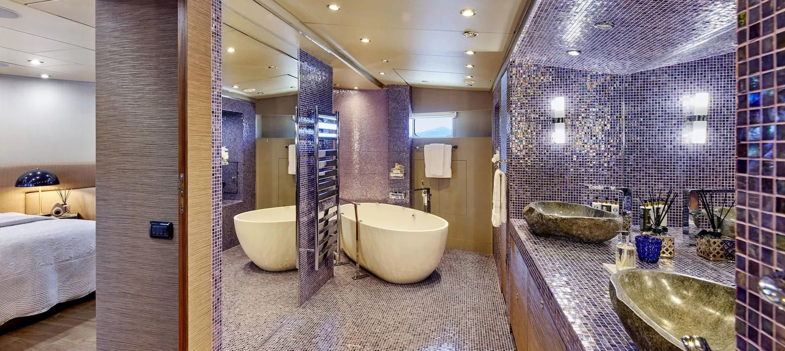 All the cabins benefit from the privacy of ensuite bathrooms, and the master also boasts a walk in wardrobe, lounge seating and vanity / desk.