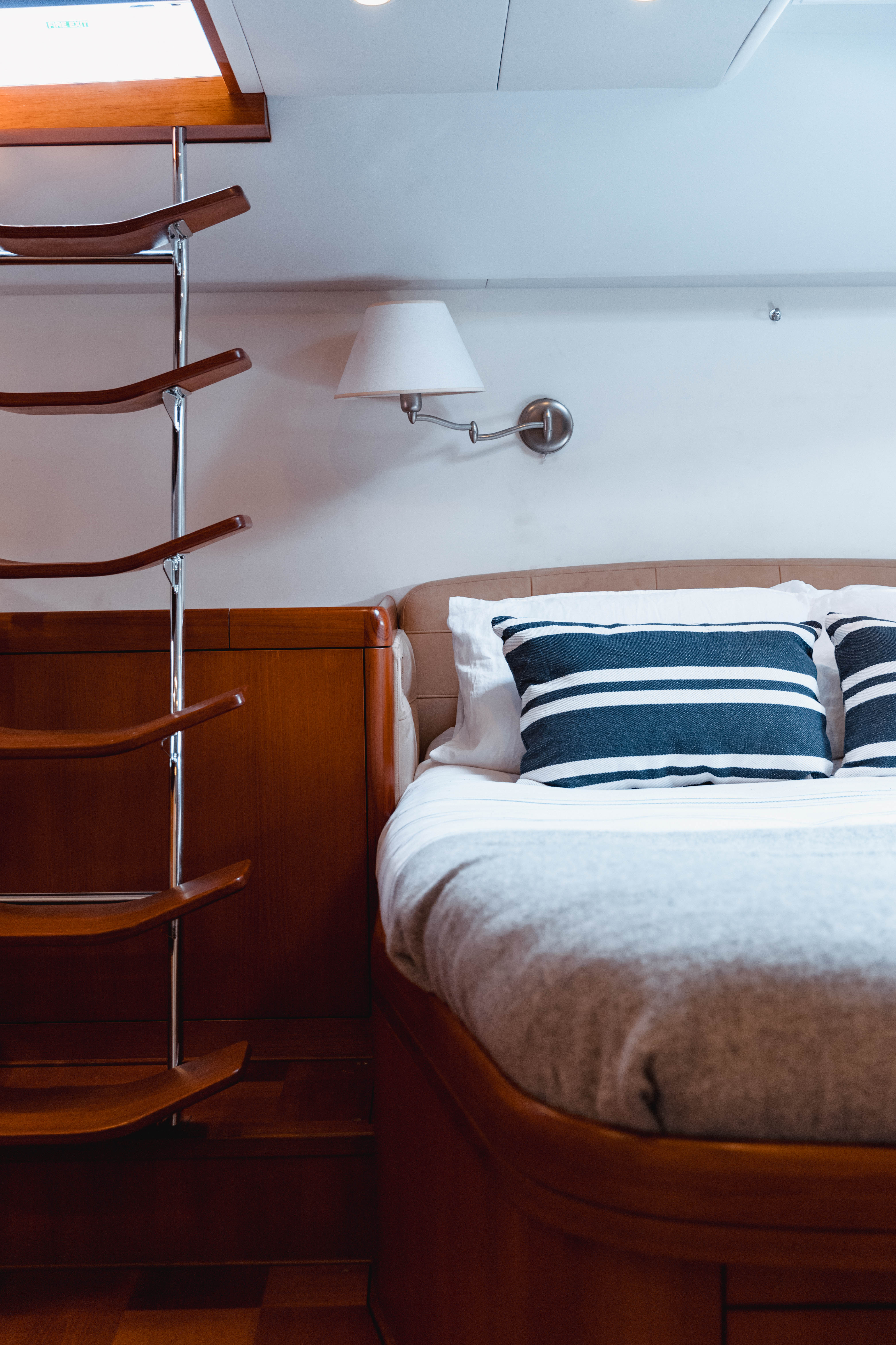 Her interior features a light, airy and spacious main saloon featuring classic wood finishes and soft, comfortable furnishings.