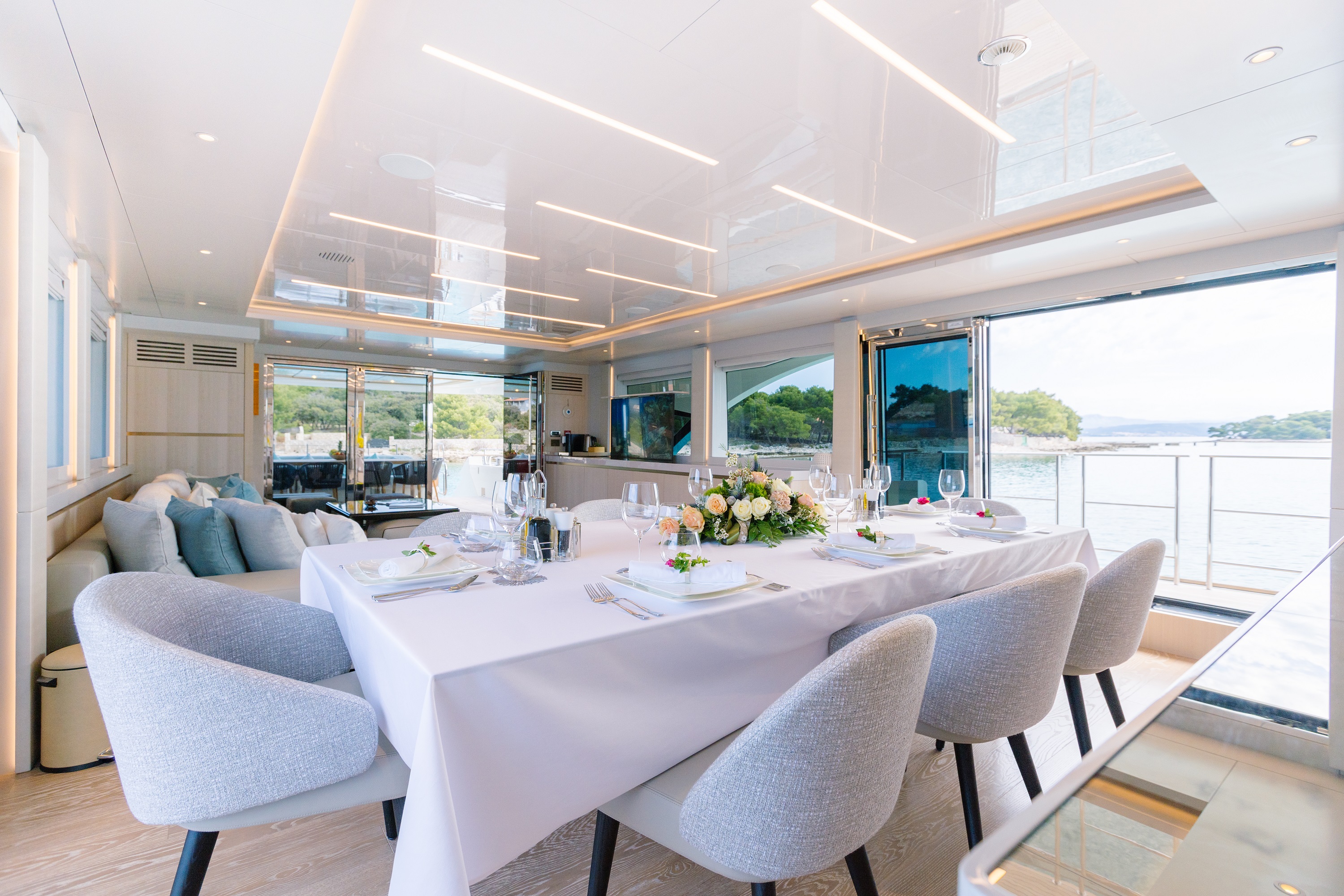 NOTABLE FEATURES OF ROCCO: ~Spacious sun deck ~Comfortable foredeck area ~Full beam main deck master ~Light and modern interior ~Zero speed stabilisers ~Opening side balconies ~Air conditioning ~WiFi