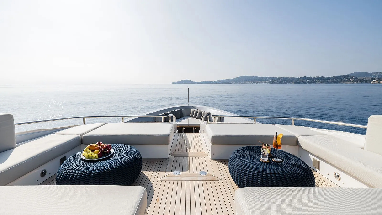 The upper deck aft presents the ultimate al fresco dining experience with impressive contemporary outdoor furnishings.