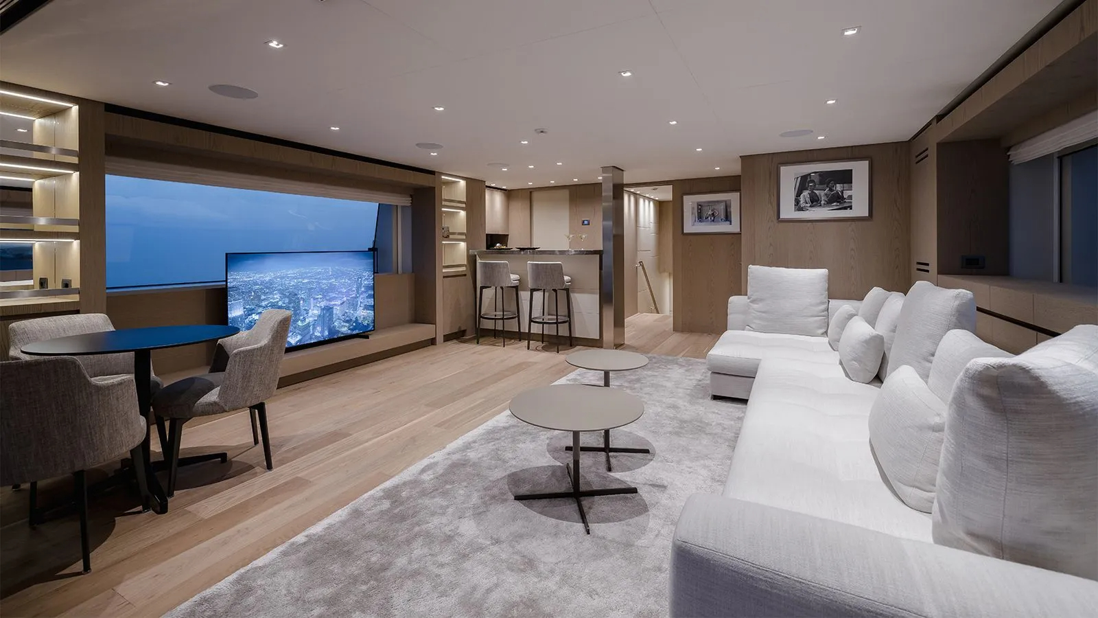 The upper deck aft presents the ultimate al fresco dining experience with impressive contemporary outdoor furnishings.