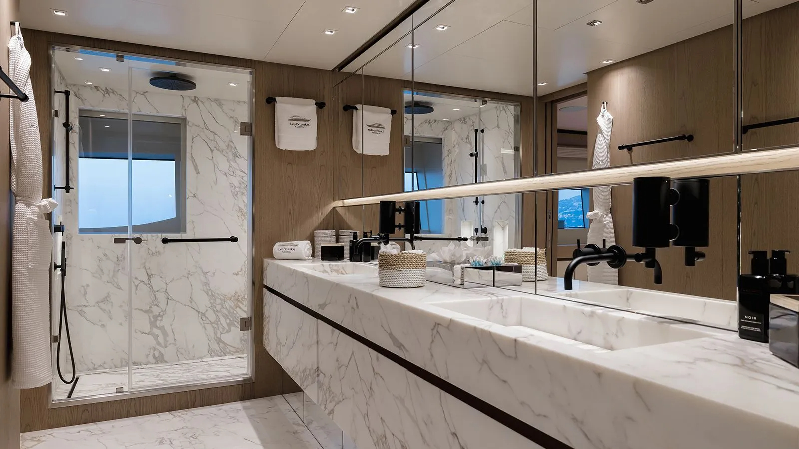 Forward on the lower deck is the generous crew space with a sizable mess and three ensuite cabins.