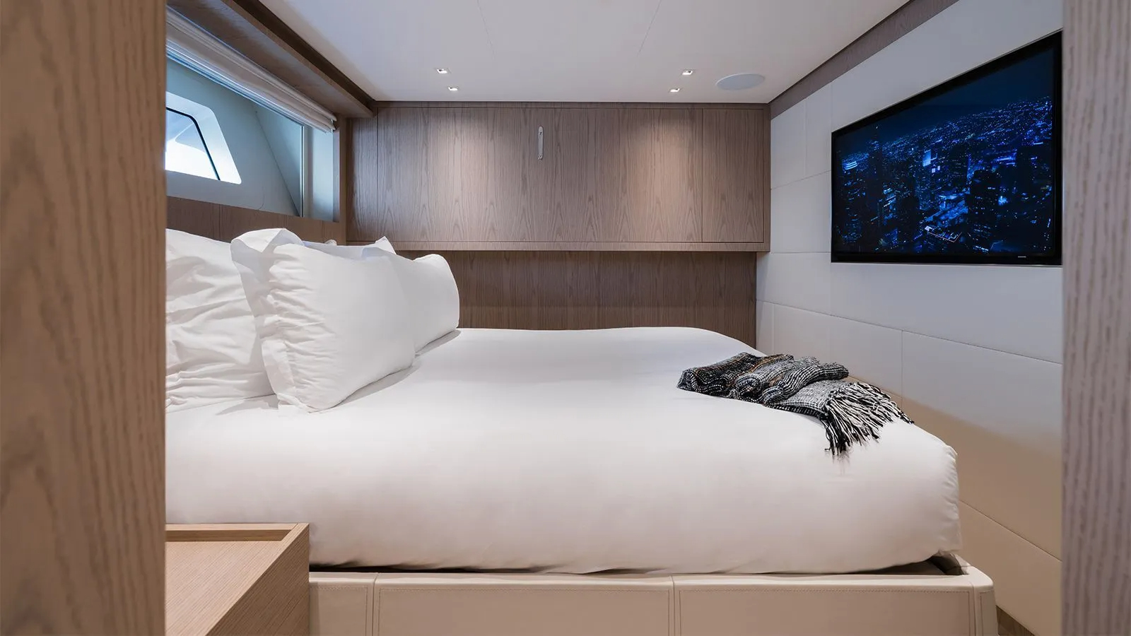 She can accommodate up to 10 guests in five luxury suites with service provided by a crew of seven.