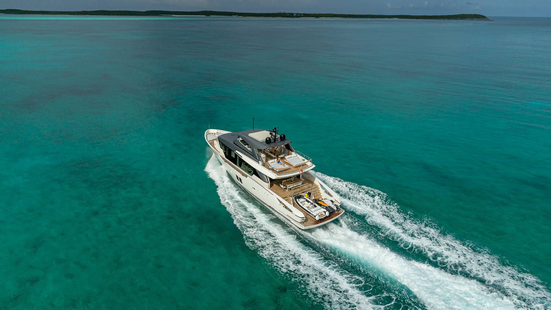 For guests who love to look out across the bow while underway, the foredeck offers sunpads and a flexible table surrounded by comfortable u-shaped banquette seating.