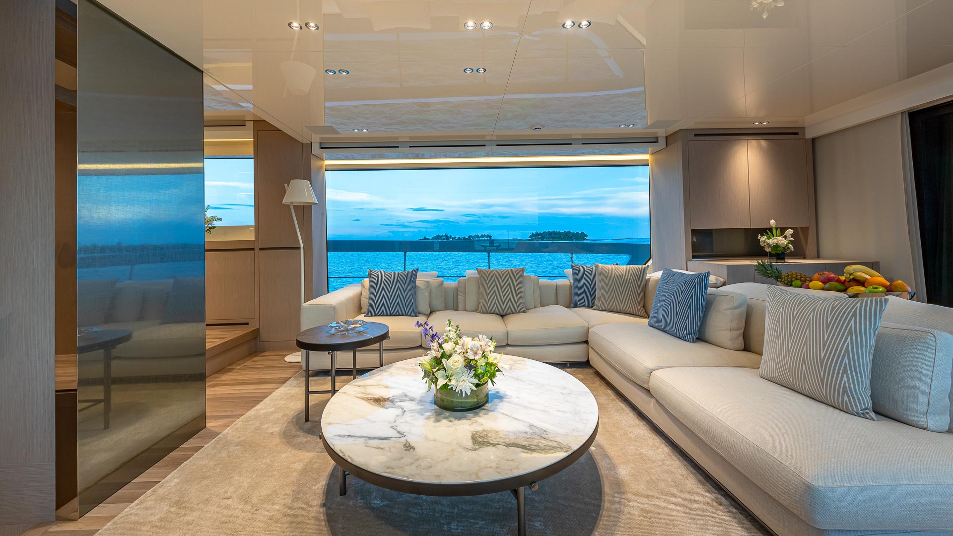 She can accommodate up to eight charter guests in four luxury suites. An on-board crew of four are on hand to offer experienced and professional service.