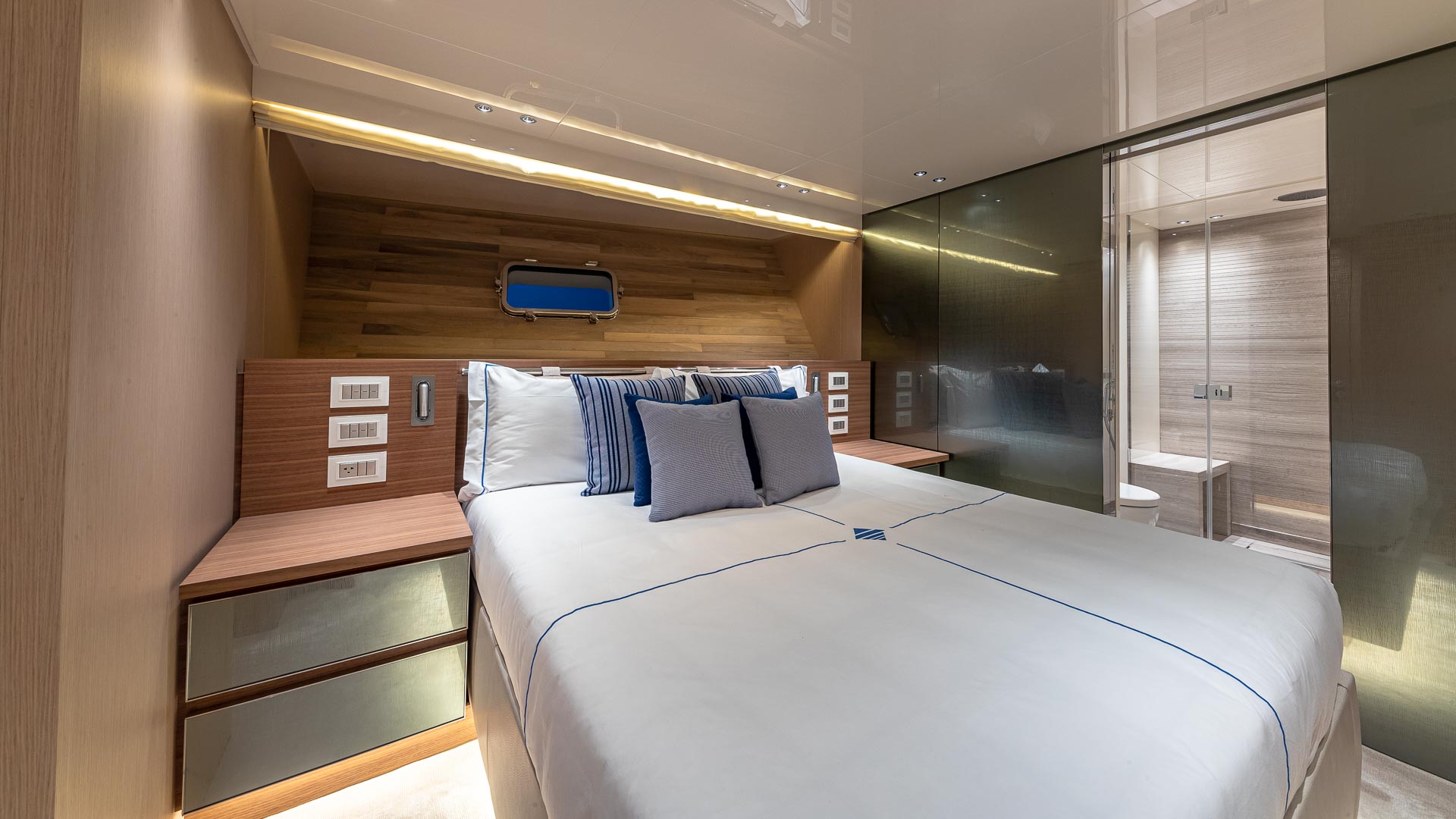 She can accommodate up to eight charter guests in four luxury suites. An on-board crew of four are on hand to offer experienced and professional service.