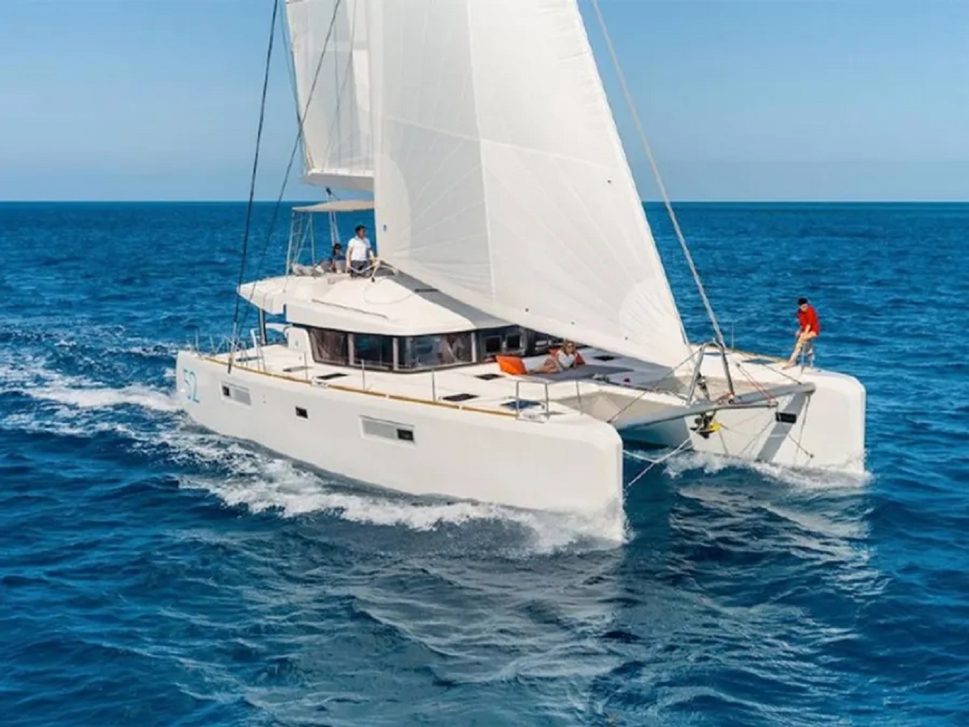 Sailing catamaran QUEEN OF DIAMONDS (ex PRINCESS BELLA) is a 2014 15.84 metres (52') Lagoon 52 that brilliantly combines elegance, comfort, security and performance under sail. She was refitted in 2022 and can accommodate up to 10 charter guests in five cabins, looked after by a professional three-person crew.