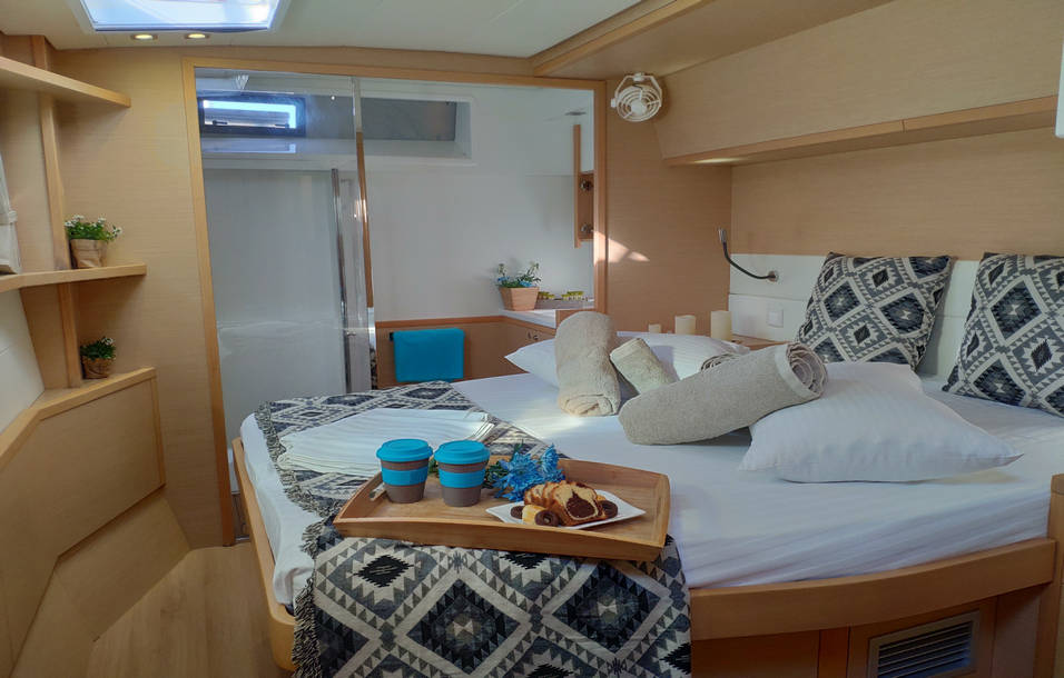 Sailing catamaran QUEEN OF DIAMONDS (ex PRINCESS BELLA) is a 2014 15.84 metres (52') Lagoon 52 that brilliantly combines elegance, comfort, security and performance under sail. She was refitted in 2022 and can accommodate up to 10 charter guests in five cabins, looked after by a professional three-person crew.