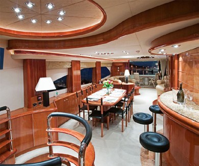 Stepping inside her saloon, the scale of the yacht takes on a new significance. The combination of beam, height and the light fresh Mediterranean-inspired design lends itself to a striking sense of volume and spaciousness.
