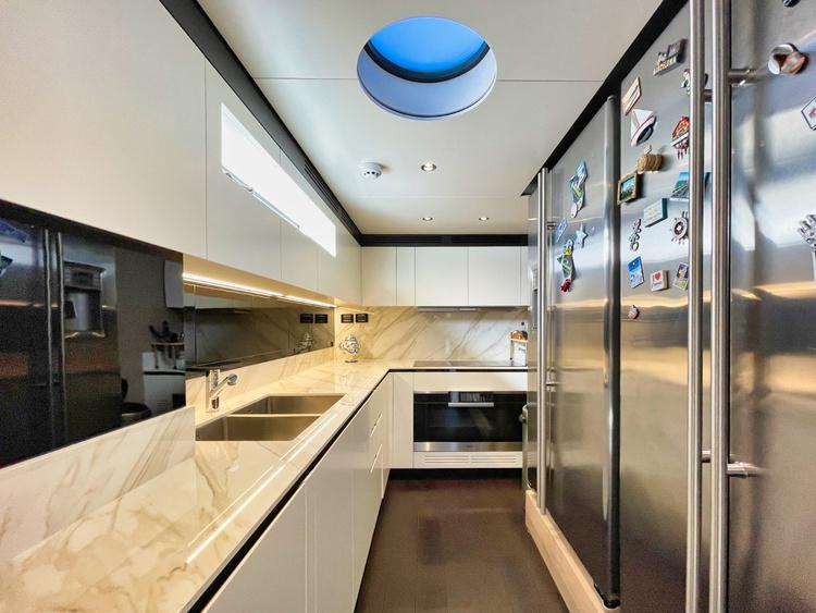 Motor yacht WAVE measures 26.78m (87’86’’) and was built by the Italian shipyard Azimut Yachts in 2019. Her elegant interiors were created by Salvagni Architetti, with striking exterior lines by Stefano Righini. She can accommodate up to ten charter guests in five cabins, with an onboard crew of four.