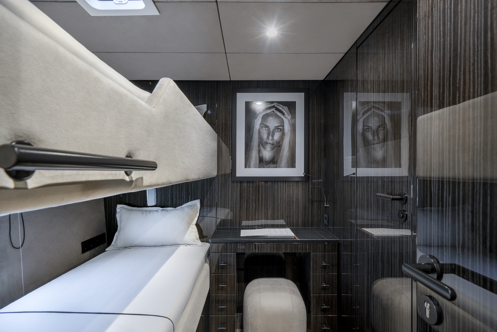 The stylish interior design continues throughout the lower deck guest cabins.