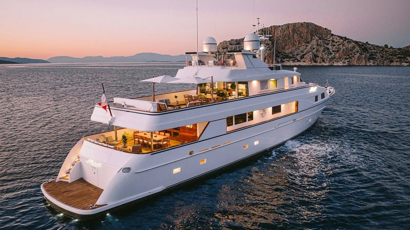 She is constructed with a steel hull and aluminium superstructure with interiors by Tino Zervudachi. The accommodation sleeps a total of 10 guests in five en-suite cabins, while a crew of nine will be on-hand for stellar service ...