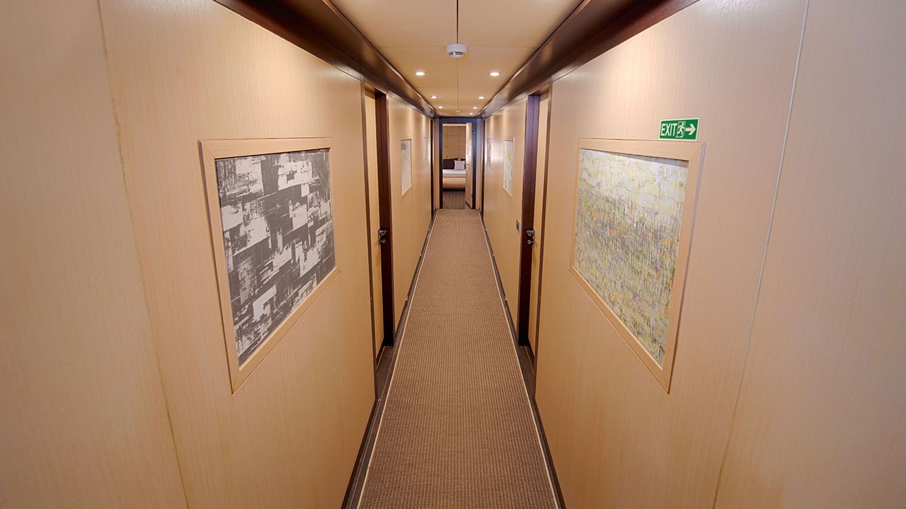 ~ The triple cabins are aft of the first Master Suite, to port and starboard respectively.