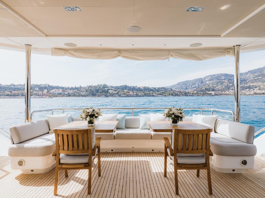 NOTABLE FEATURES OF RIVIERA LIVING: ~Flybridge Jacuzzi ~Abundance of sunbeds ~Refined interiors ~Fold-down terrace ~Top speed of 24 knots ~Draft of just 2.1m/6.11ft for close beach access ~Air ...
