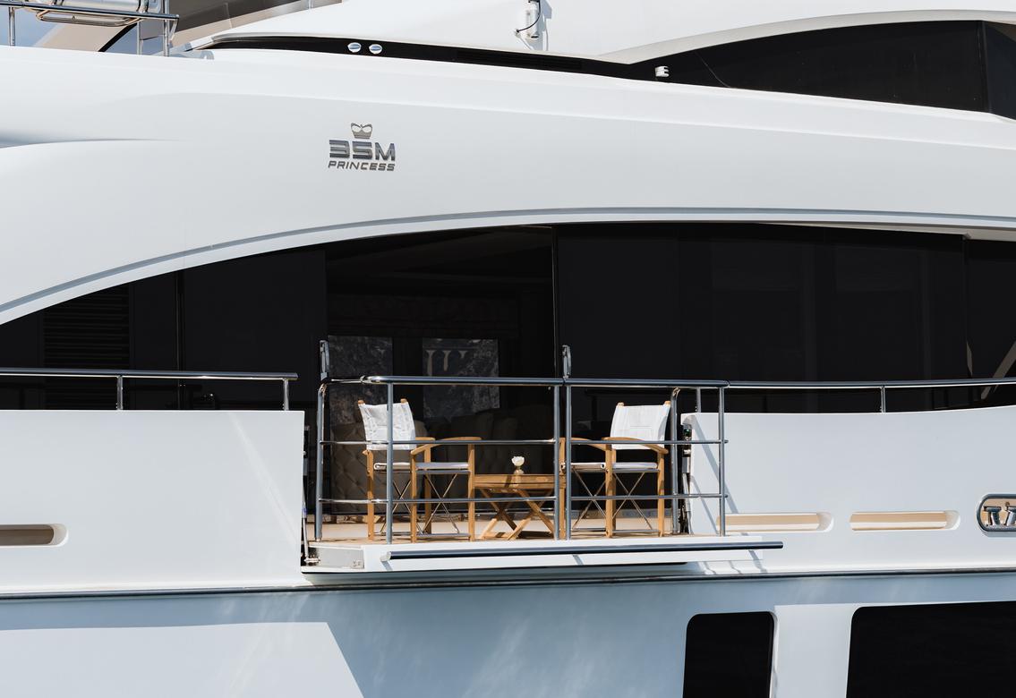 35.2m/115.6ft motor yacht RIVIERA LIVING (ex.LADY SORAYA) from American shipyard Princess Yachts was built in 2017 and constructed with a lightweight GRP hull and superstructure. She features a sleek exterior design from Bernard Olesinki, while the sophisticated modern interiors come from the team at Princess Yachts.