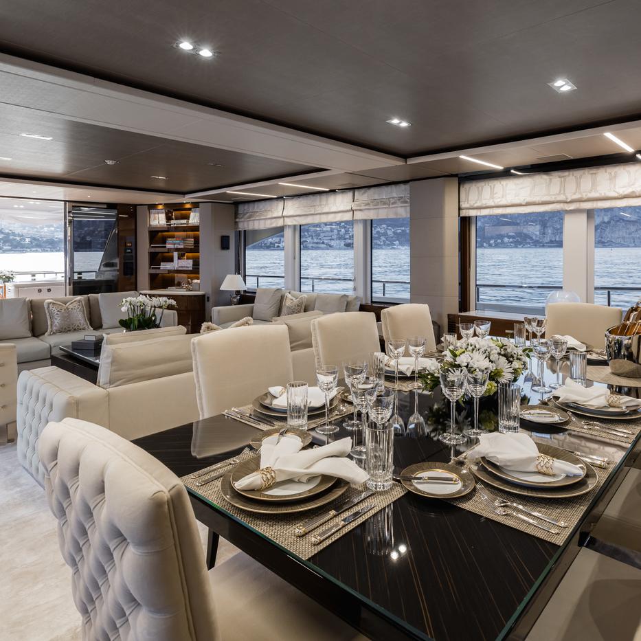 NOTABLE FEATURES OF RIVIERA LIVING: ~Flybridge Jacuzzi ~Abundance of sunbeds ~Refined interiors ~Fold-down terrace ~Top speed of 24 knots ~Draft of just 2.1m/6.11ft for close beach access ~Air ...
