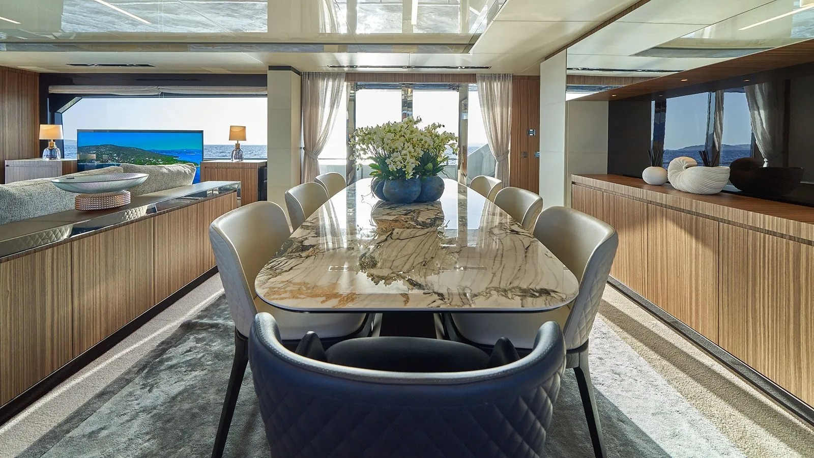 NOTABLE FEATURES OF NIKITA: ~Foredeck sunbeds ~Large flybridge lounge ~Full-beam Master suite ~Gym convertible to children's cabin ~Fold-down terrace ~Top speed of 26 knots ~Air conditioning ~Wi-Fi