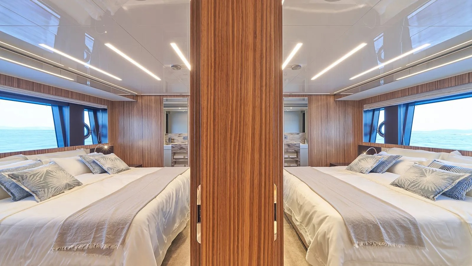 Accommodation is provided for 8 charter guests in 4 ensuite cabins and there is a crew of 5 ensuring everyone has a relaxing charter vacation on board.