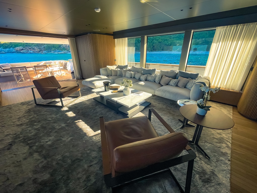 There are 7 beds in total, including 4 queen and 1 pullman. She is also capable of carrying up to 5 crew onboard to ensure a relaxed luxury yacht charter experience. Her interiors are neutral, modern and luxurious. Full height interior windows can be completely opened up allowing for natural light throughout the yacht.