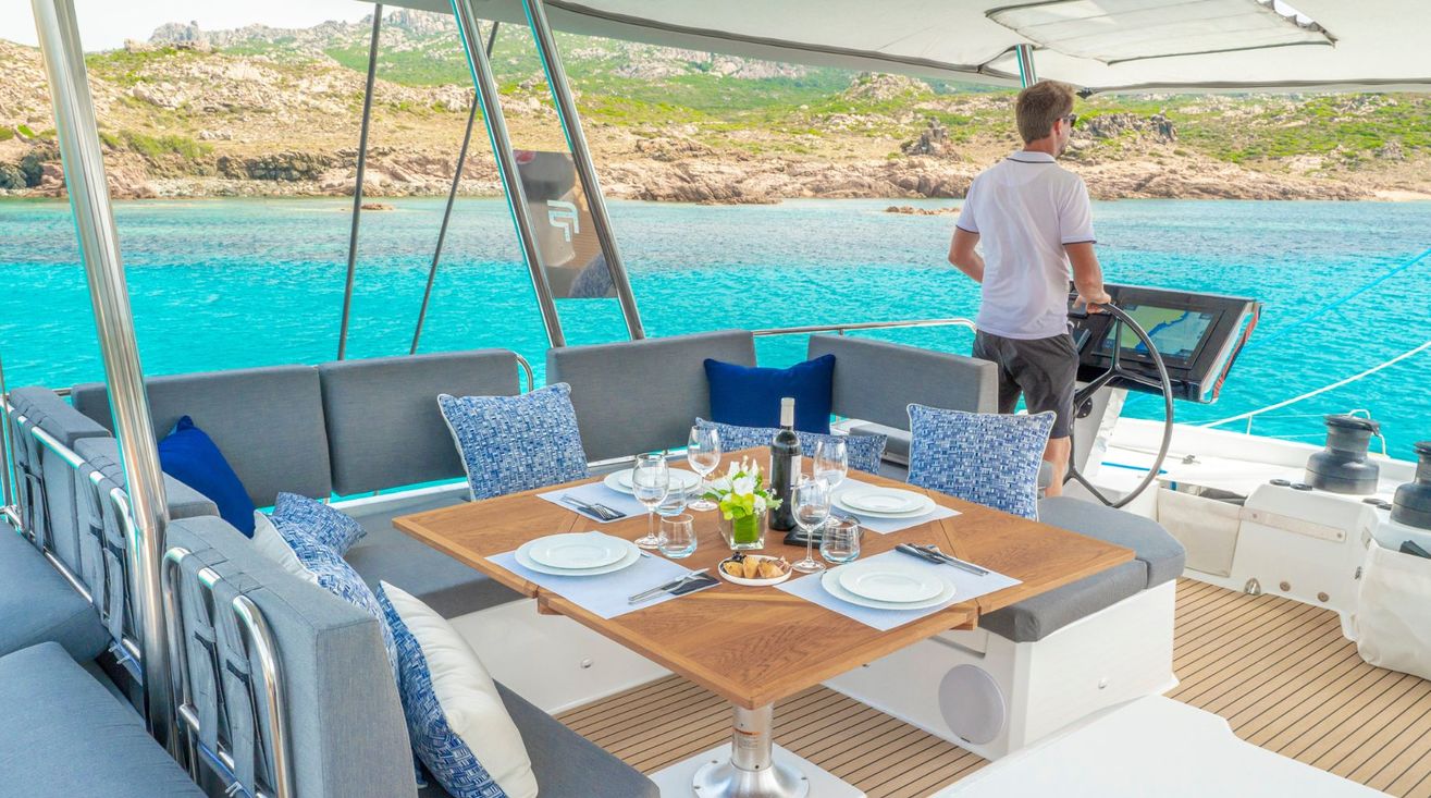 The foredeck provides the ideal spot for guests to spend a relaxing day either in the heated jacuzzi, sipping a drink on the lounge seating or enjoying the thrill of the trampolines.