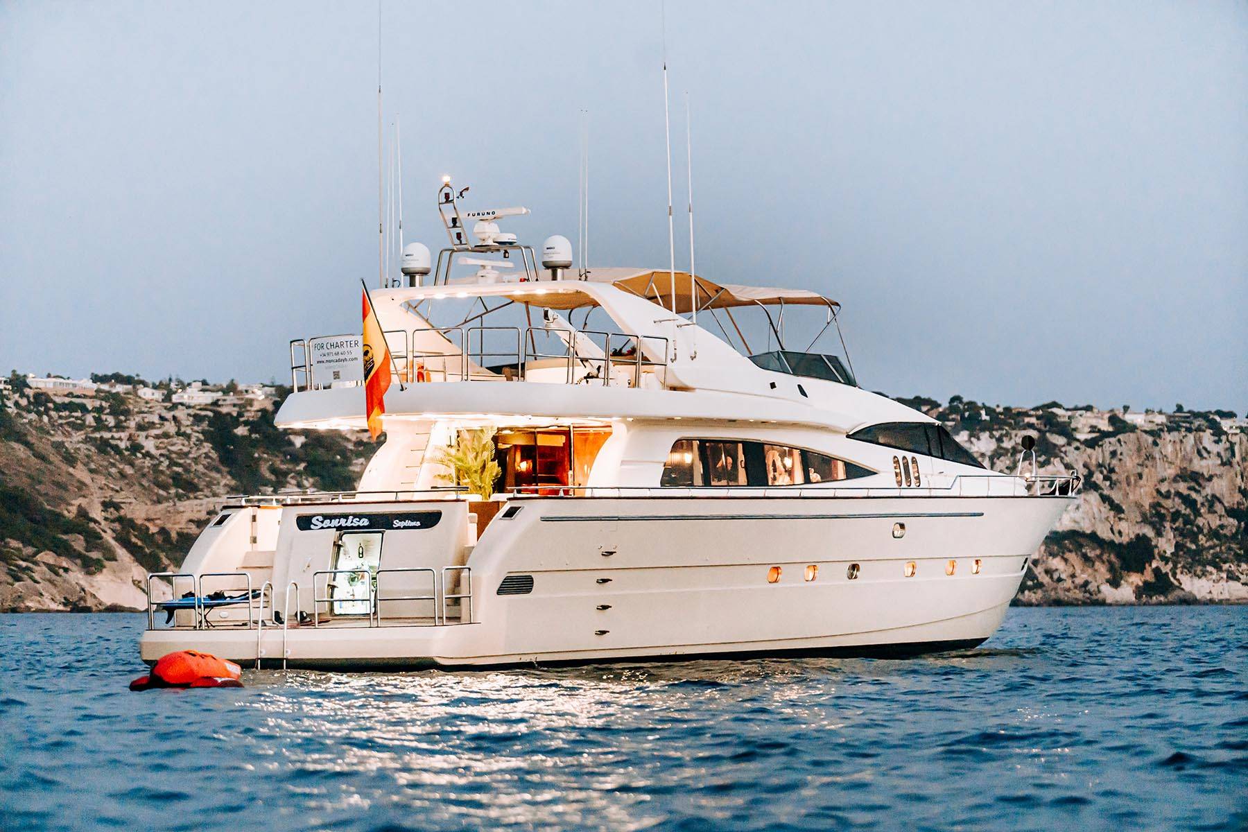 Luxury yacht SONRISA SEPTIMO is a 28.90m (94' 10") motor yacht built by the prestigious Spanish shipyard Astondoa and delivered in 1997. She has been newly refitted in 2022 to the highest standards with elegant interior styling by Italian design duo Nuvolari Lenard.