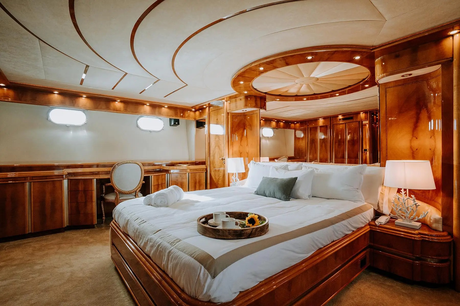 Accommodation is for up to eight charter guests in four beautiful staterooms who will be looked after by a professional crew of four.
