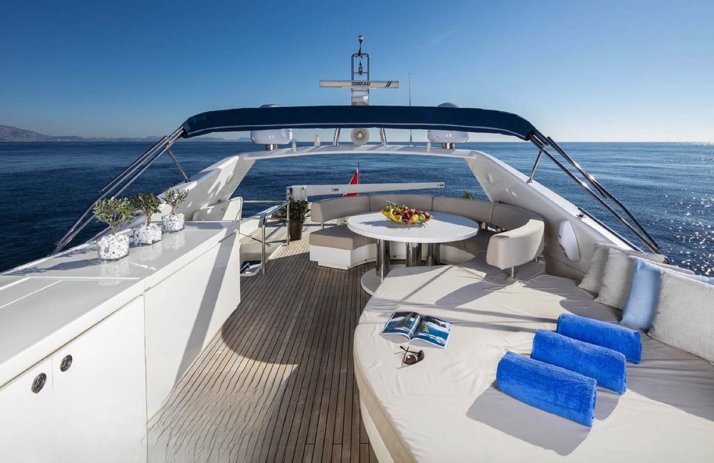 MYTHOS G offers guests a host of exterior deck space from which they can enjoy their surroundings.