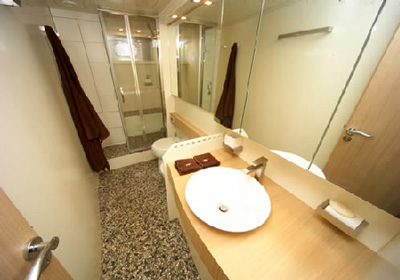 The yacht’s owner's cabin is located in the aft and has a double bed with ensuite (which is full beam width). Her VIP cabin also has a double bed with ensuite.