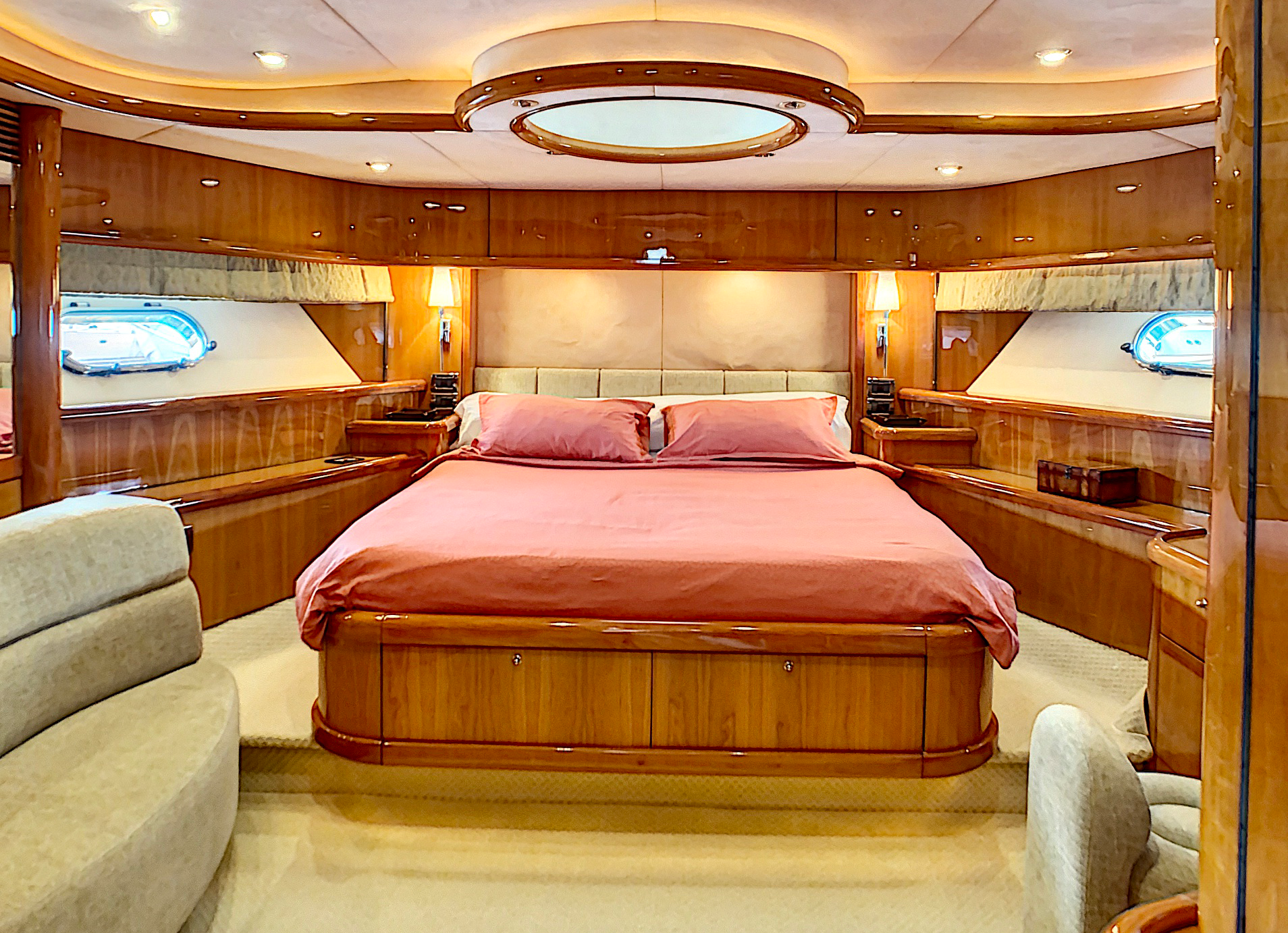 Four elegantly styled suites welcome guests on the lower deck. A full beam master is complemented by a VIP double and two twin cabins. All the accommodation offers the luxury and privacy of ensuite bathroom facilities.