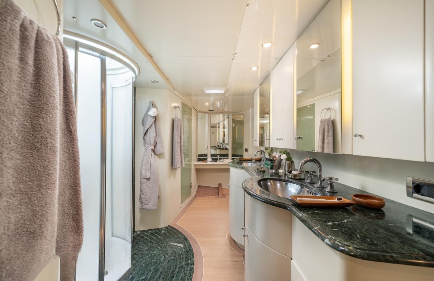All the cabins benefit from the luxury and privacy of ensuite bathroom facilities. They are light and bright thanks to the portholes, light wells, elegant lighting, and neutral décor. The primary charter guests will be delighted by the spacious master and its generous bathroom with double vanity, lounge area and desk space.