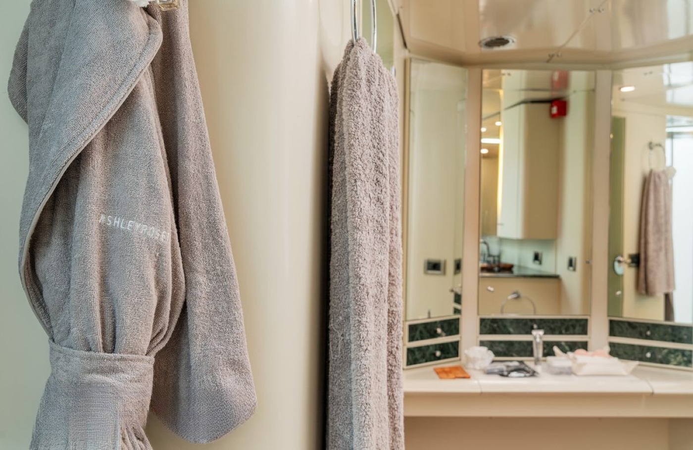 All the cabins benefit from the luxury and privacy of ensuite bathroom facilities. They are light and bright thanks to the portholes, light wells, elegant lighting, and neutral décor. The primary charter guests will be delighted by the spacious master and its generous bathroom with double vanity, lounge area and desk space.