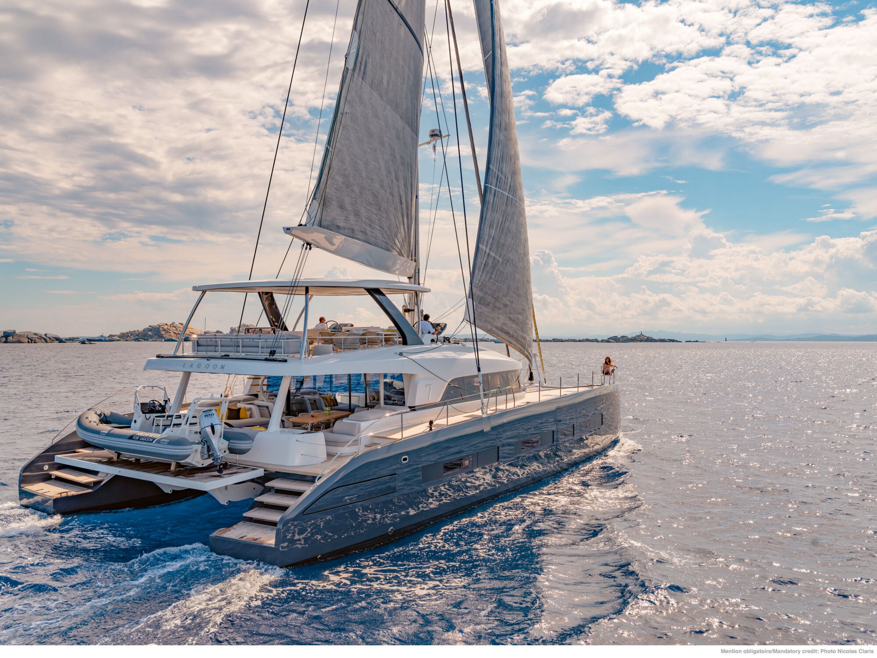 Sailing catamaran NEFESH is a 23.22m (76' 2") eco-friendly, hybrid Lagoon 77 designed by the shipyard in collaboration with VPLP, Patrick le Quemet and Nauta design and delivered in 2022. She is an elegant and refined vessel offering a range of luxury features including a private owner’s beach club.