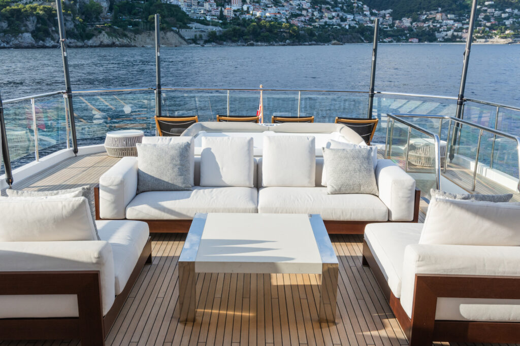 As you enter through any of the doors there is a supremely comfortable lounge area with plenty of plush sofas and chairs. Forward in the salon is a formal dining space which can accommodate all the guests on board.