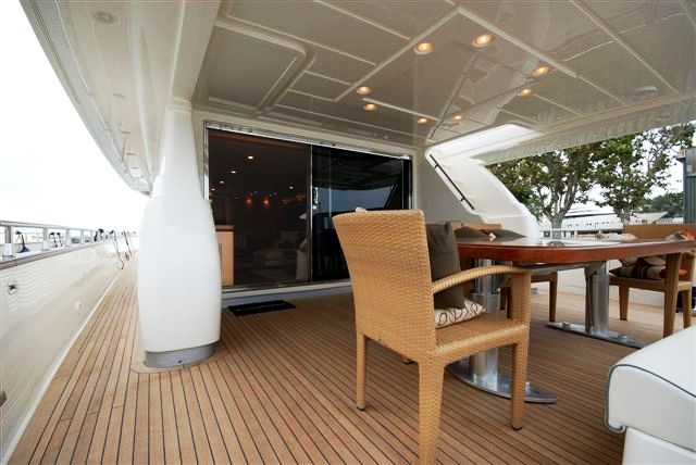 On deck, she has a great layout with good areas for sunning, relaxation and entertainment. Inside the yacht offers a contemporary uncluttered interior design using clean modern lines and splashes of bright colour to create personality.
