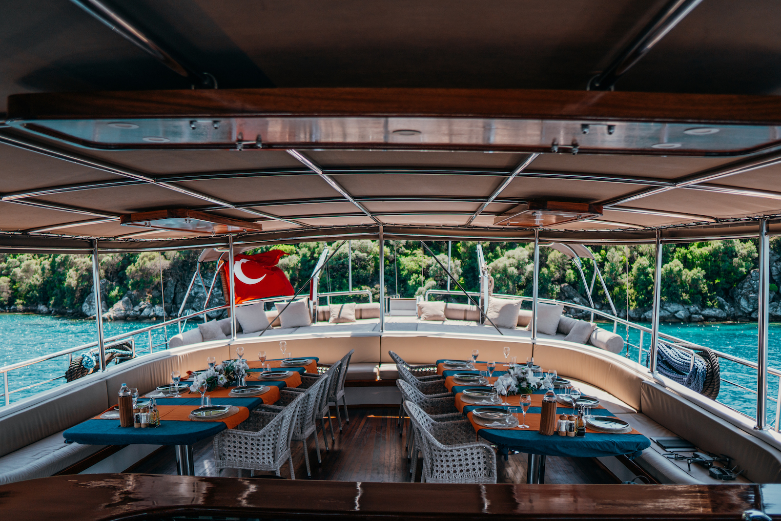 Gulet yacht NEVRA QUEEN provides yacht charters in The Mediterranean, Europe, Turkey, Slovenia, Marmaris, Gocek, and Fethiye.