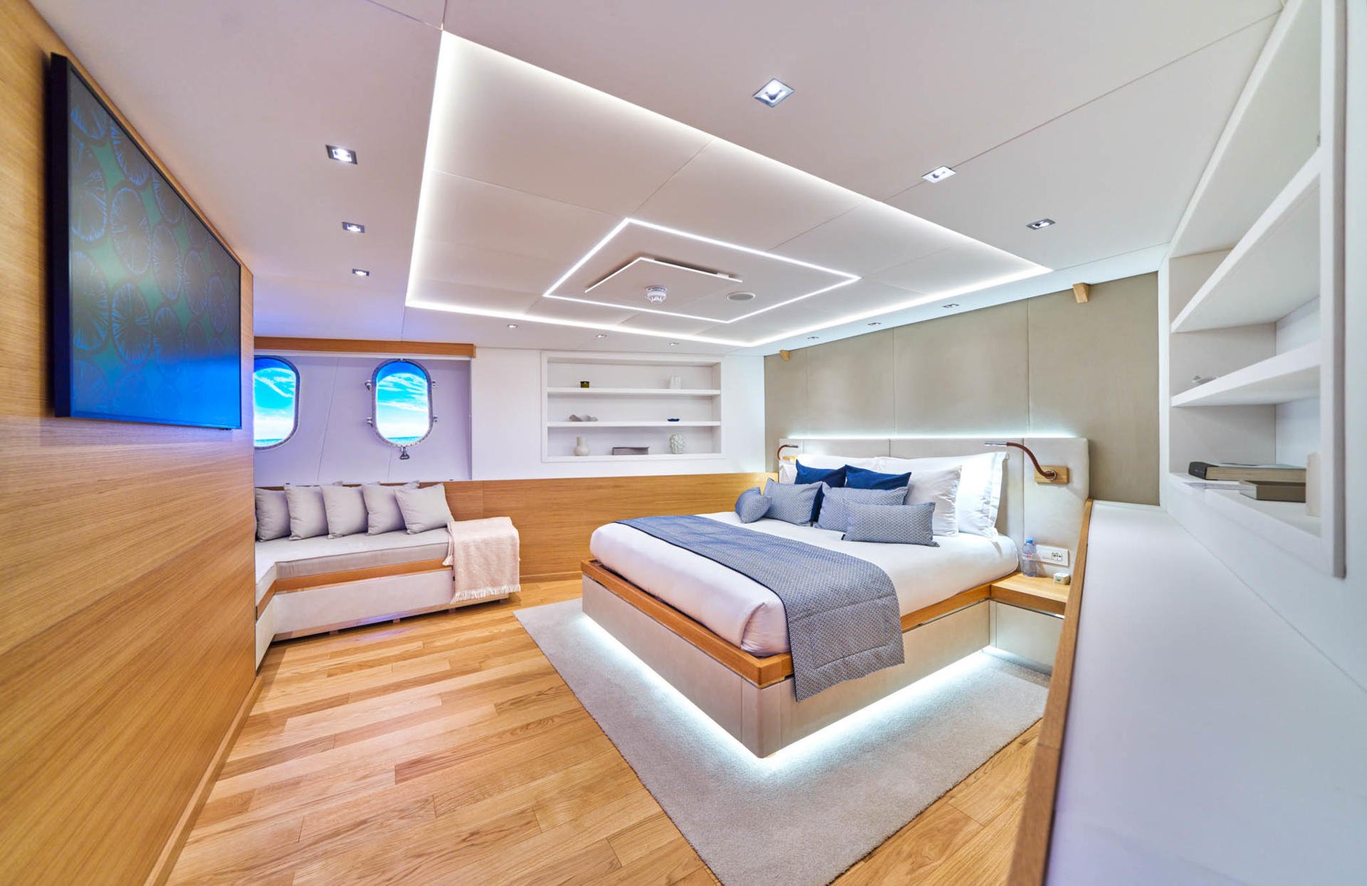 The wheelhouse on the bridge deck is the captain’s domain with his own private quarters and a high-tech helm.