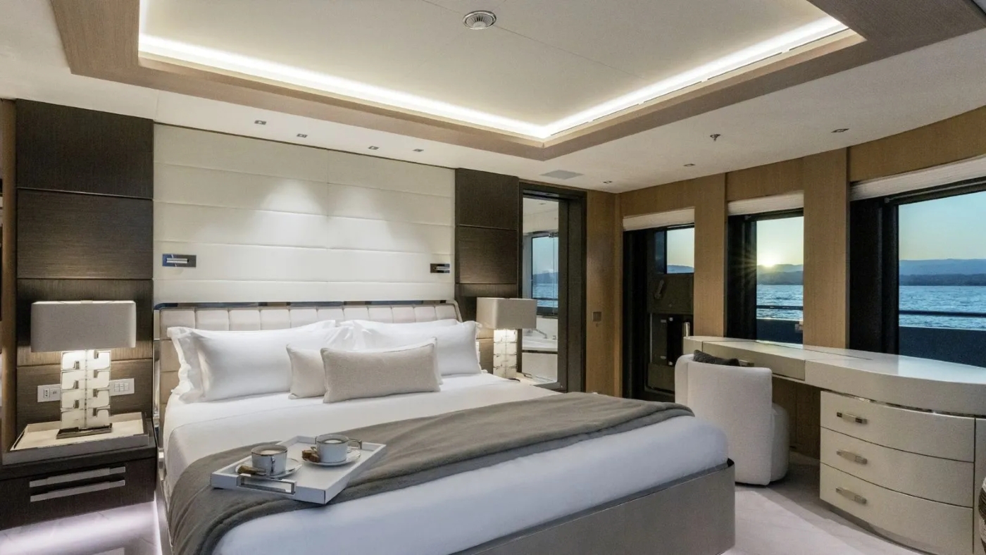 The accommodation sleeps a maximum of 12 guests across 7 en-suite cabins, with a professional crew of 17 to provide first-class service.