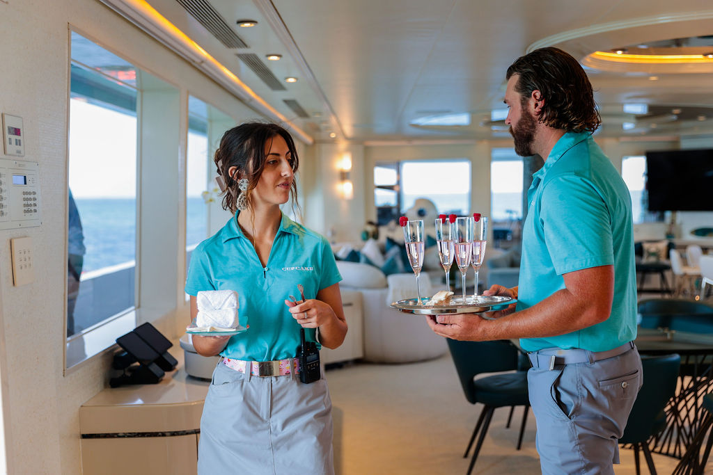 Above the sky lounge, on the sundeck, panoramic views create the exhilarating feeling of being on top of the world. The Spa Pool, full bar with seating, and spacious seating make this a perfect area for sunbathing or cocktails.