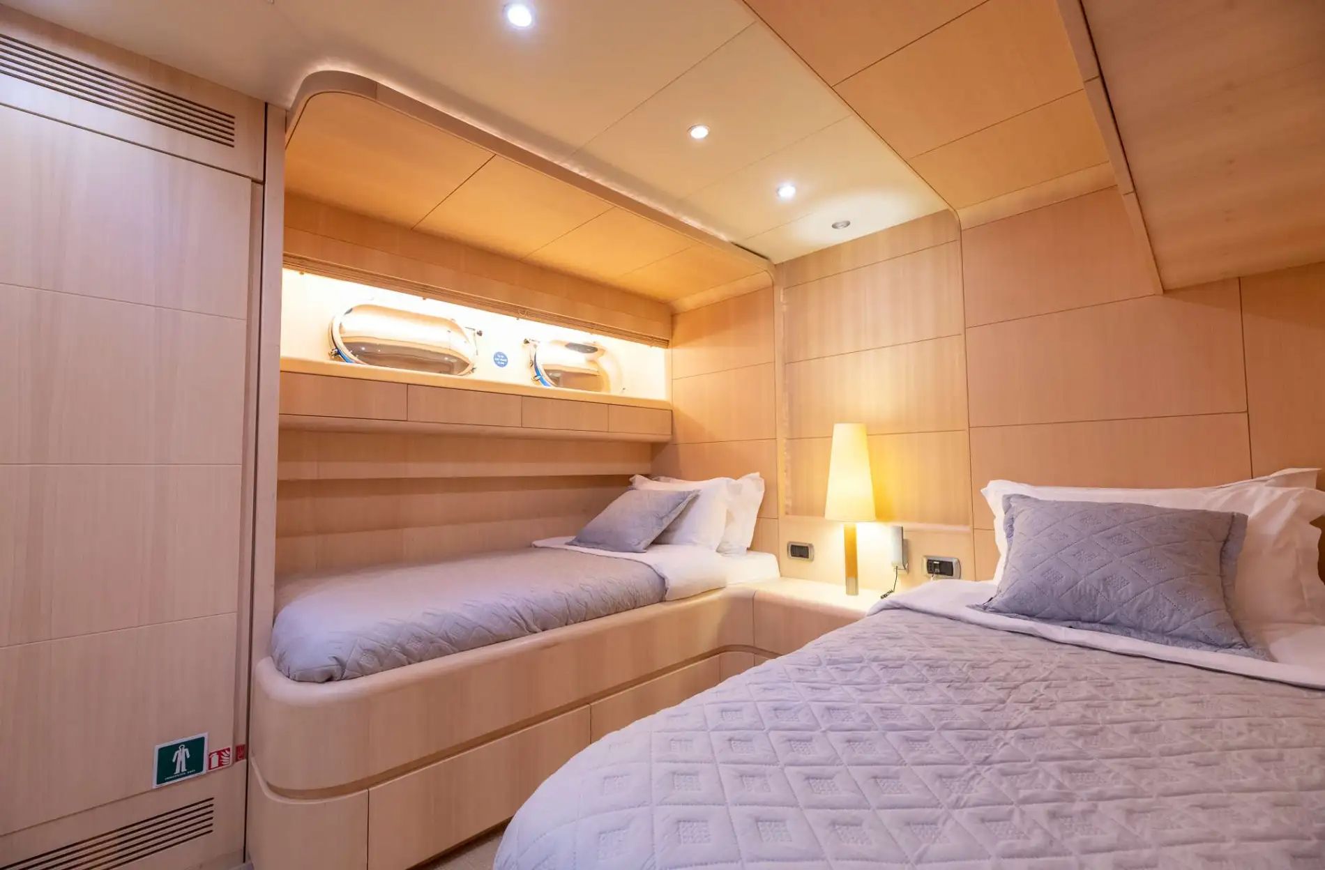 She can accommodate up to 12 overnight guests on board in 6 beautiful suites with additional accommodation for the 8 professional crew members.