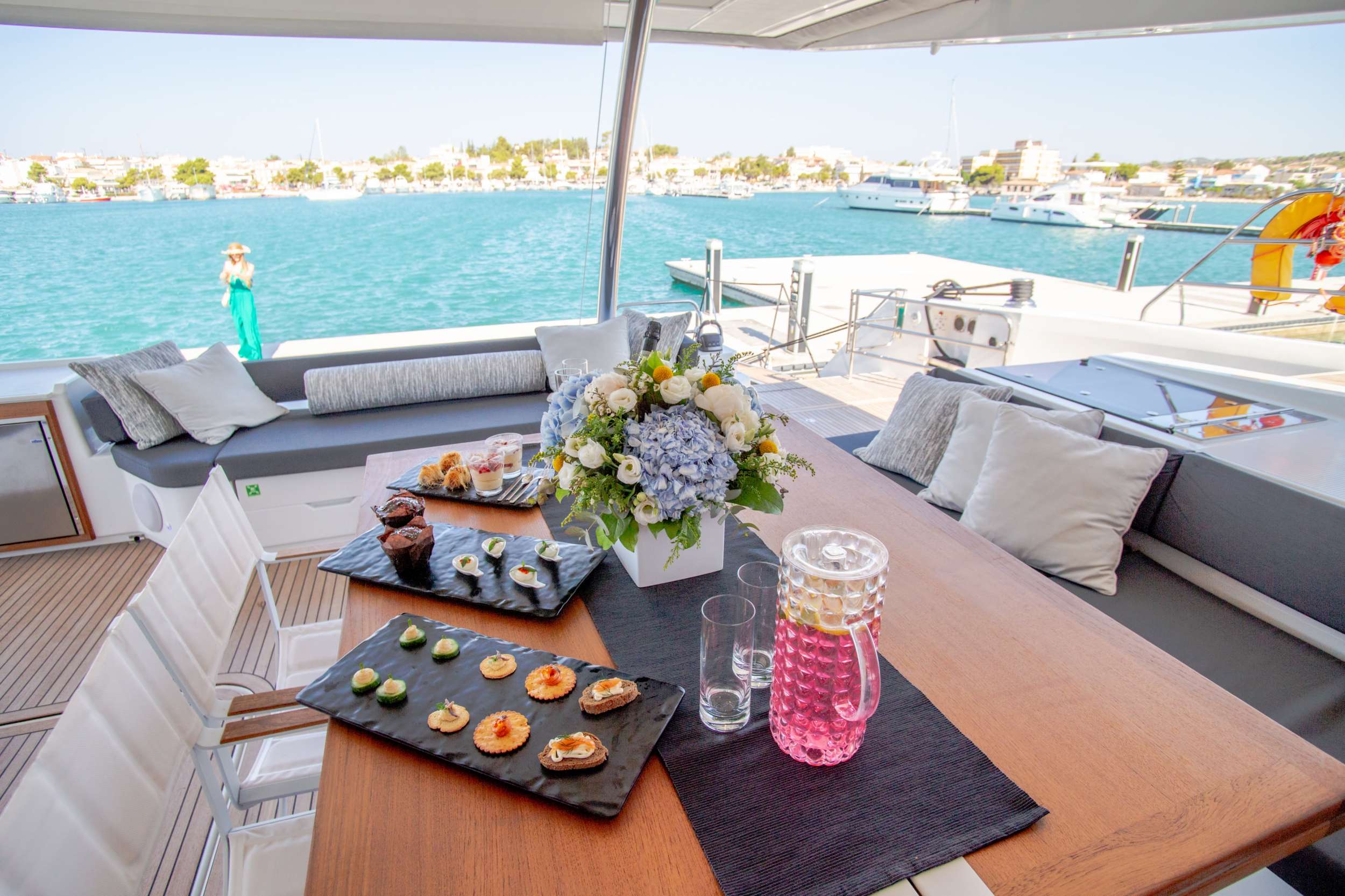 NOTABLE FEATURES OF ALENA: ~Spacious catamaran decks ~On deck jacuzzi ~Flybridge sunbathing and dining ~Fabulous owners suite ~Plenty of water toys ~Air conditioning ~WiFi