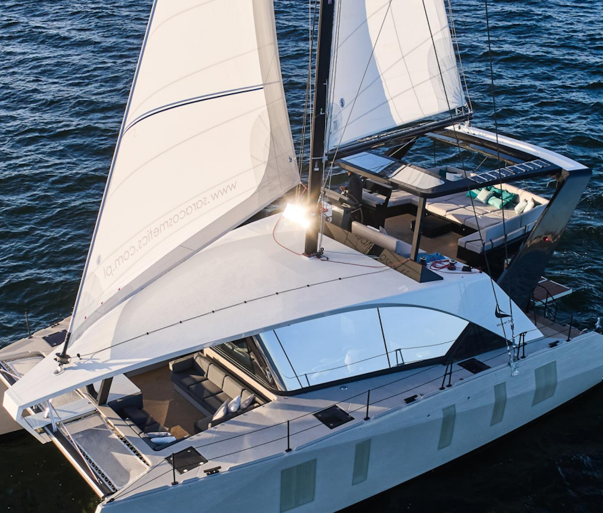 Sailing yacht WAVE 50 is a 15.10 m (49' 6") luxury sailing catamaran from Wave Catamarans, delivered in 2021 from Poland with designer interiors by Agat Kowalska-Stycharz. She is the first model in the series and presents a distinctive shape giving unprecedented amounts of space.