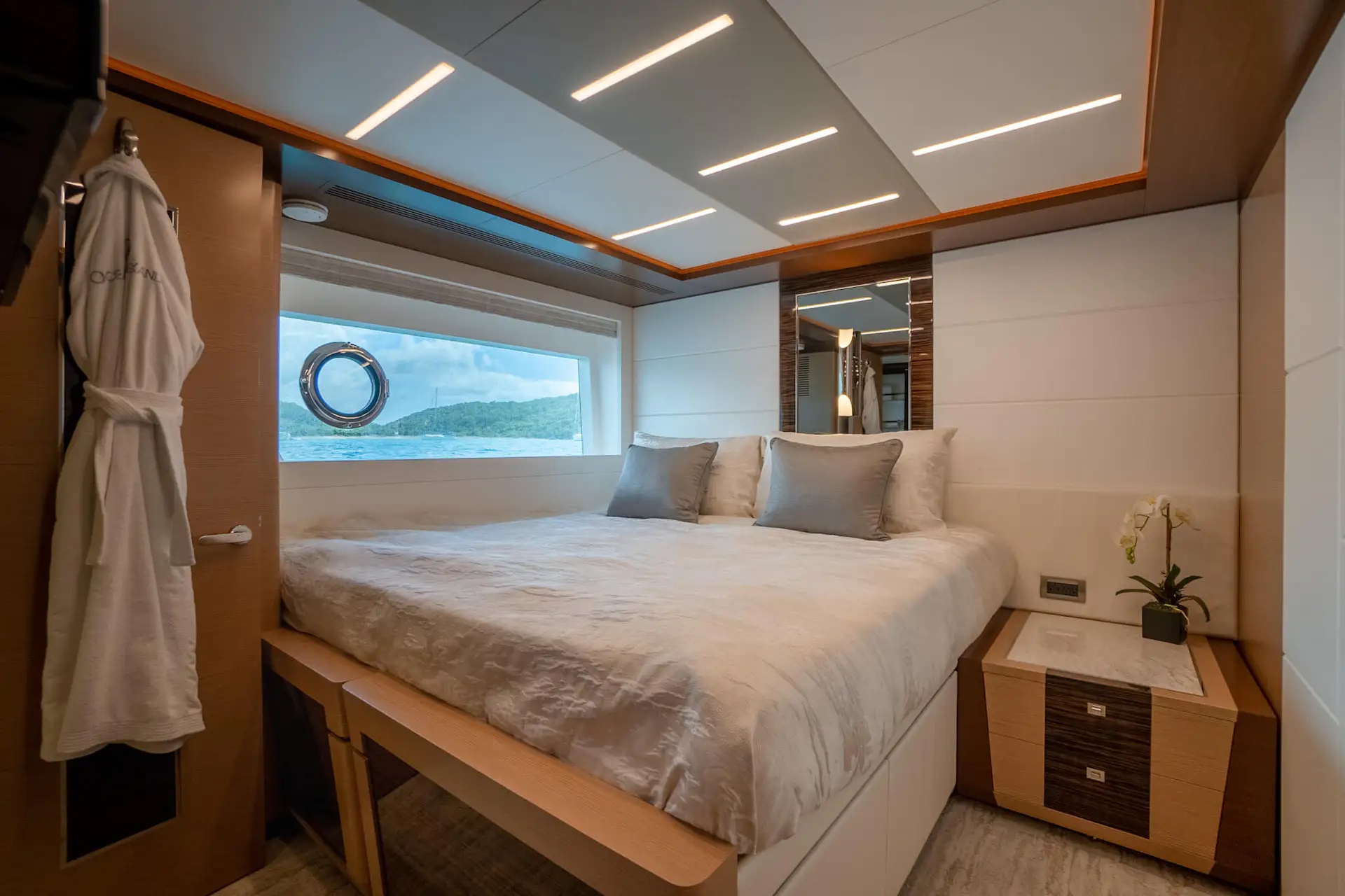 She can accommodate eight charter guests in four luxury suites plus a crew of four.
