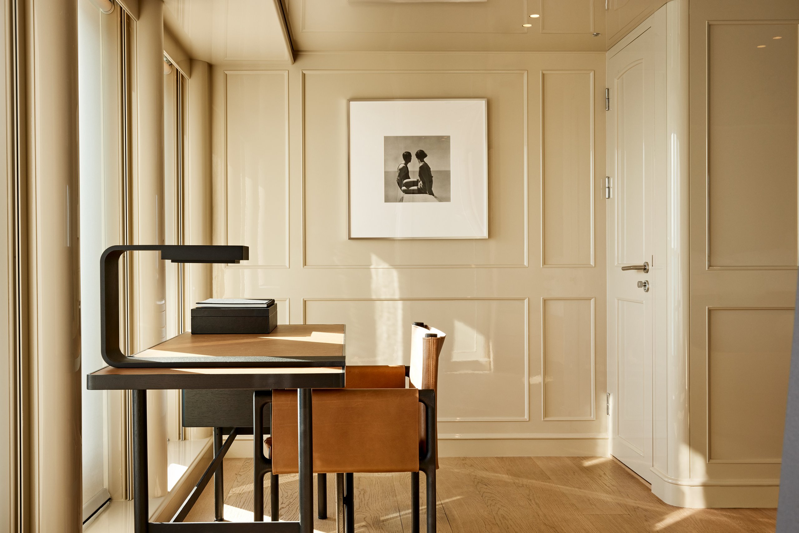 Her master cabin has a king-size bed, private office, lounge sofa, walk-in wardrobe and large ensuite.
