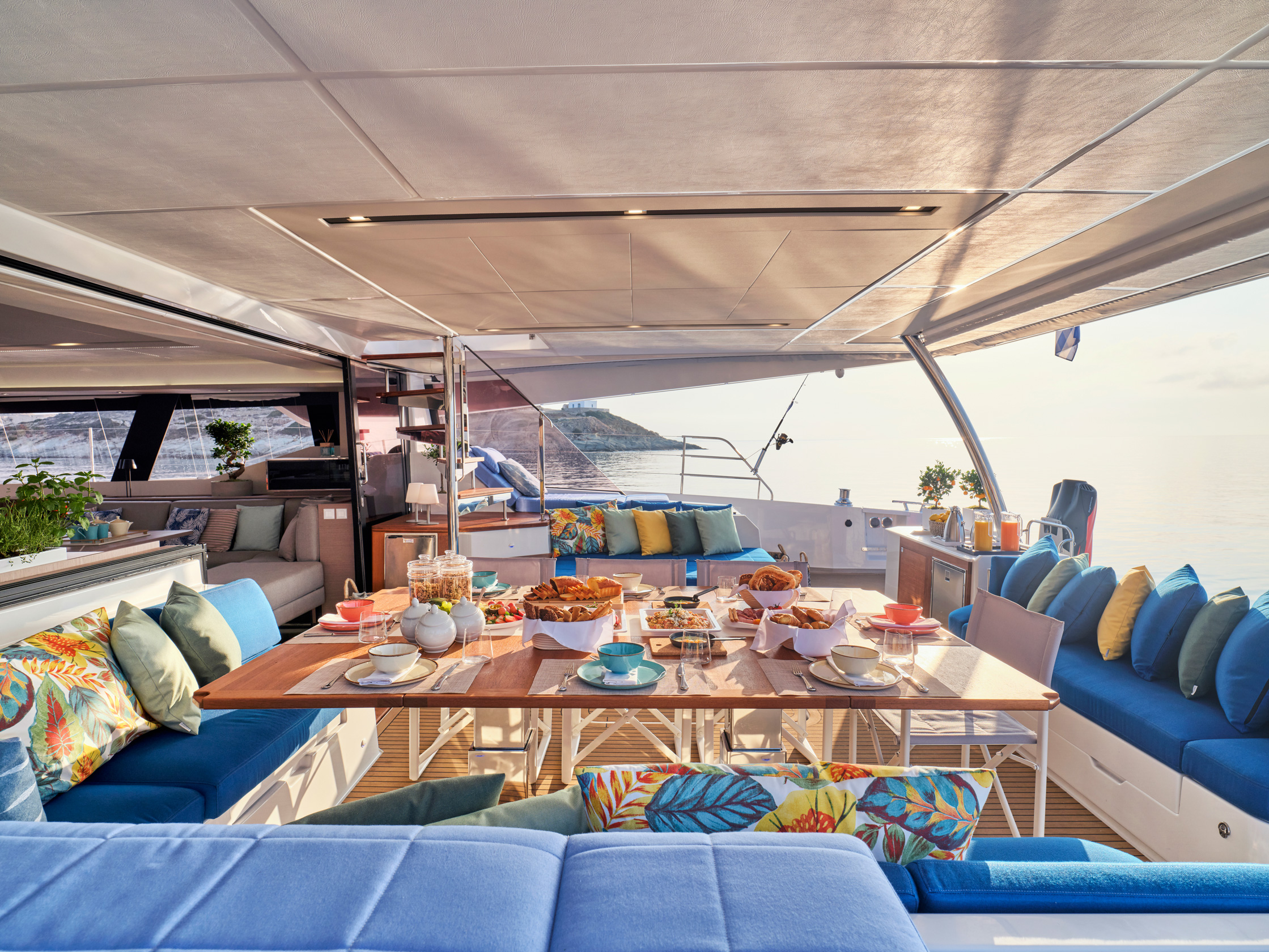 NOTABLE FEATURES OF APHAEA: ~Extensive outdoor areas ~Modern design ~Superior flybridge with 4 speaker system ~Array of water toys ~Air conditioning ~WiFi