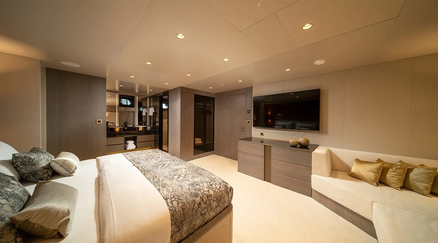 She can accommodate 12 guests in six bright and contemporary suites. Eight professional crew will be on board to enhance the charter experience.