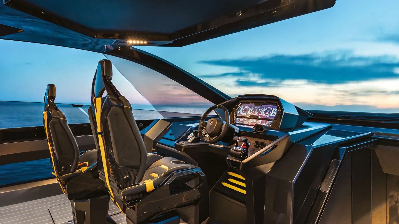 The interior design makes use of high-tech materials in terms of weight and functionality, perfectly combined with the best craftsmanship from Italy. The unmistakable inspiration from Lamborghini design includes hexagon elements, clean lines, colours and materials and are clear to see throughout.