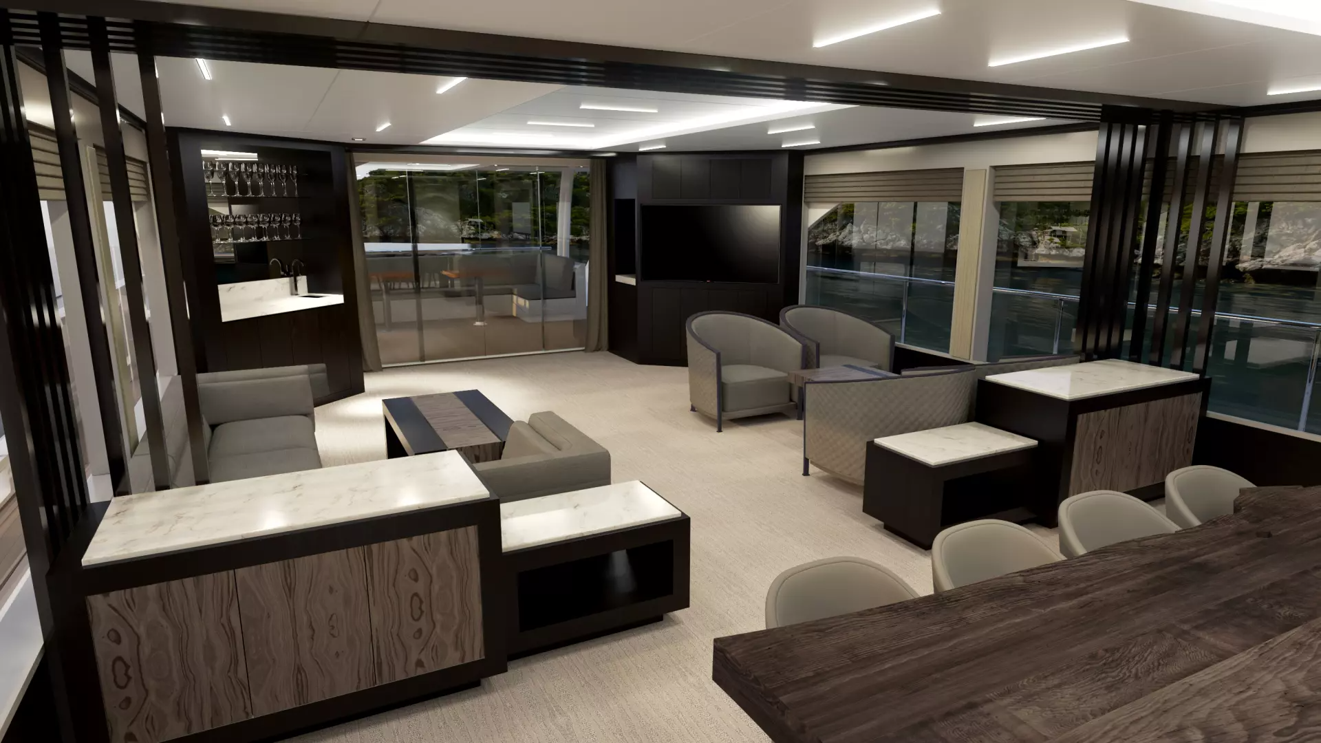 The space is covered, offers access to the main salon and down to the beach club. The hydraulic swim platform can be opened while at anchor creating a huge sunbathing space and waterside access to the range of water toys. There is also a steam room in the beach club area.